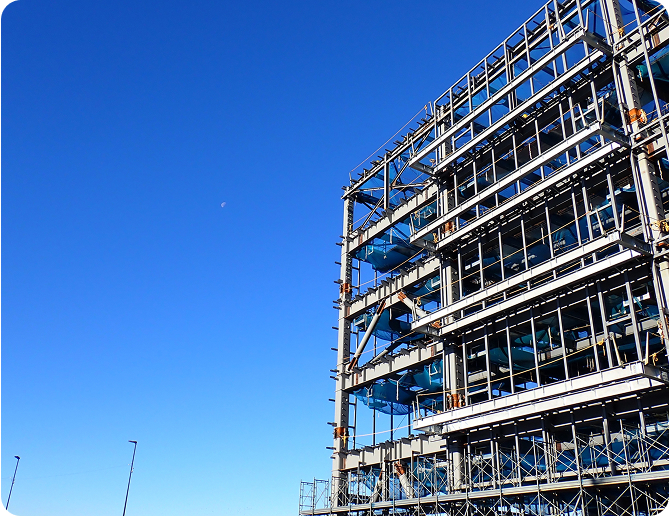 当社は、鉄工工事のプロフェッショナルとして、建築・土木・設備・プラントなど幅広い分野で鉄骨加工・溶接・施工を行っています。